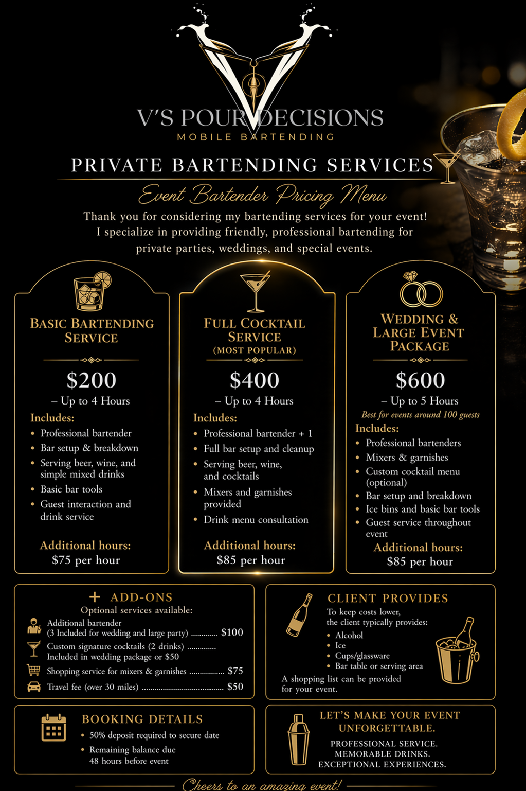 From intimate gatherings to unforgettable celebrations, we bring a high-end cocktail experience directly to you. Professional service, premium presentation, and unforgettable drinks.